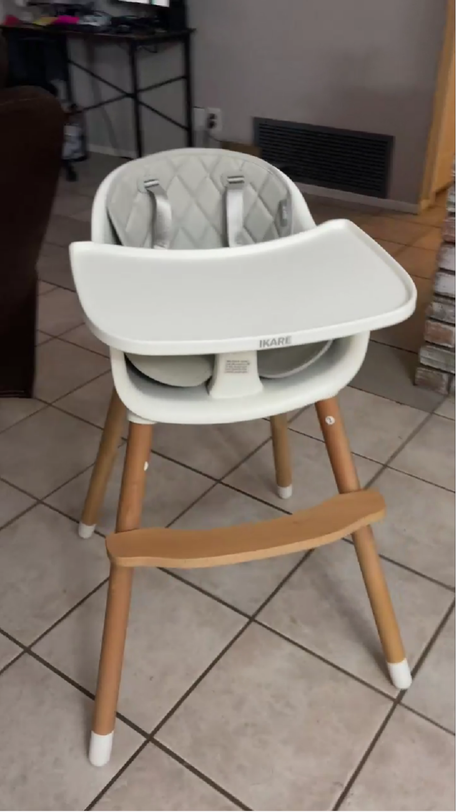 Love the ikare Chair! Its stylish wood finish and white design fit perfectly with any home. I appreciate how adjustable it is—footrest, tray, and legs all grow with your child. It’s super easy to clean, and the straps go right in the wash.