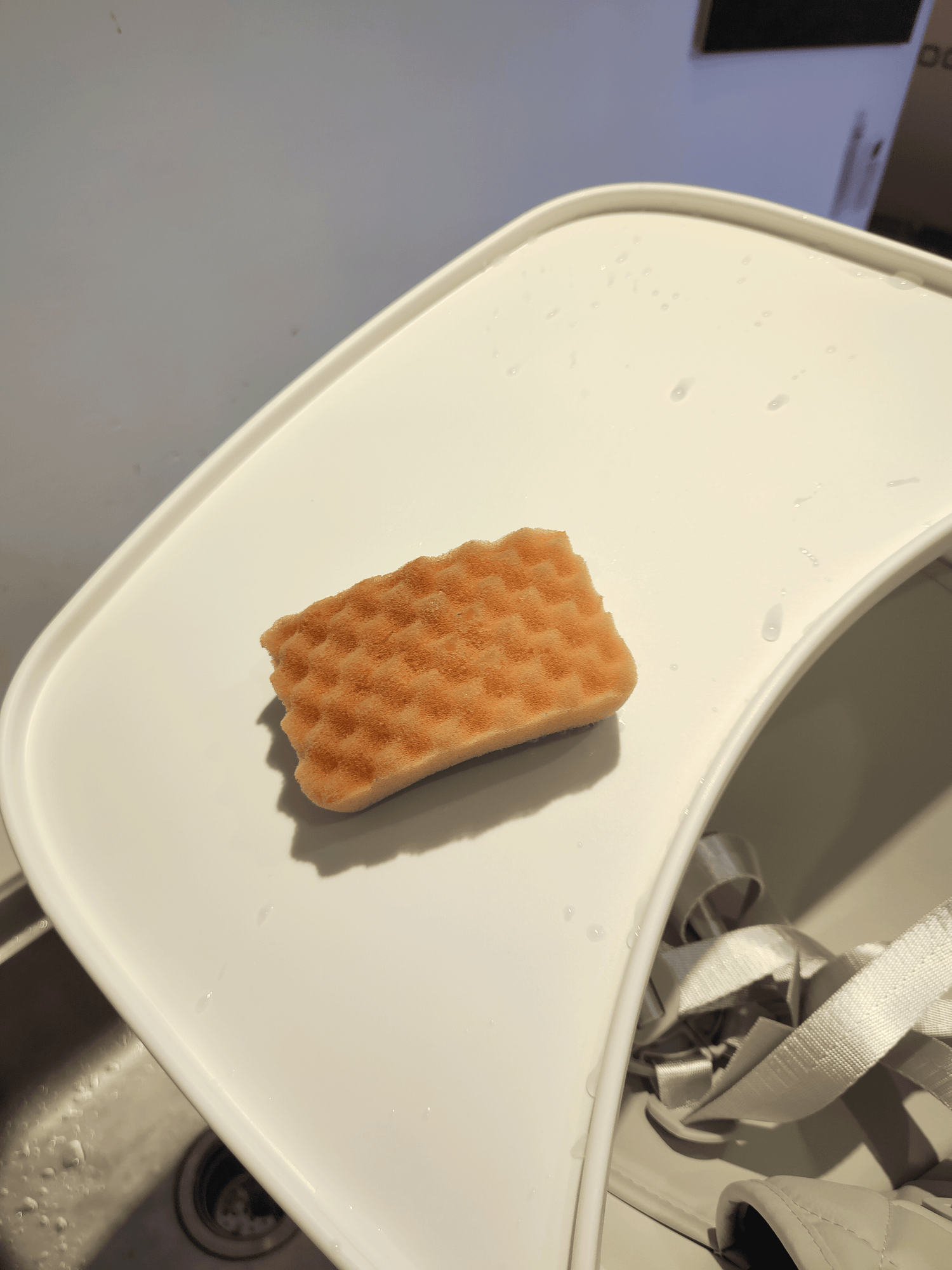 Seat + Tray: Use a wet sponge and mild dish soap to wipe the surfaces of the seat and tray down.