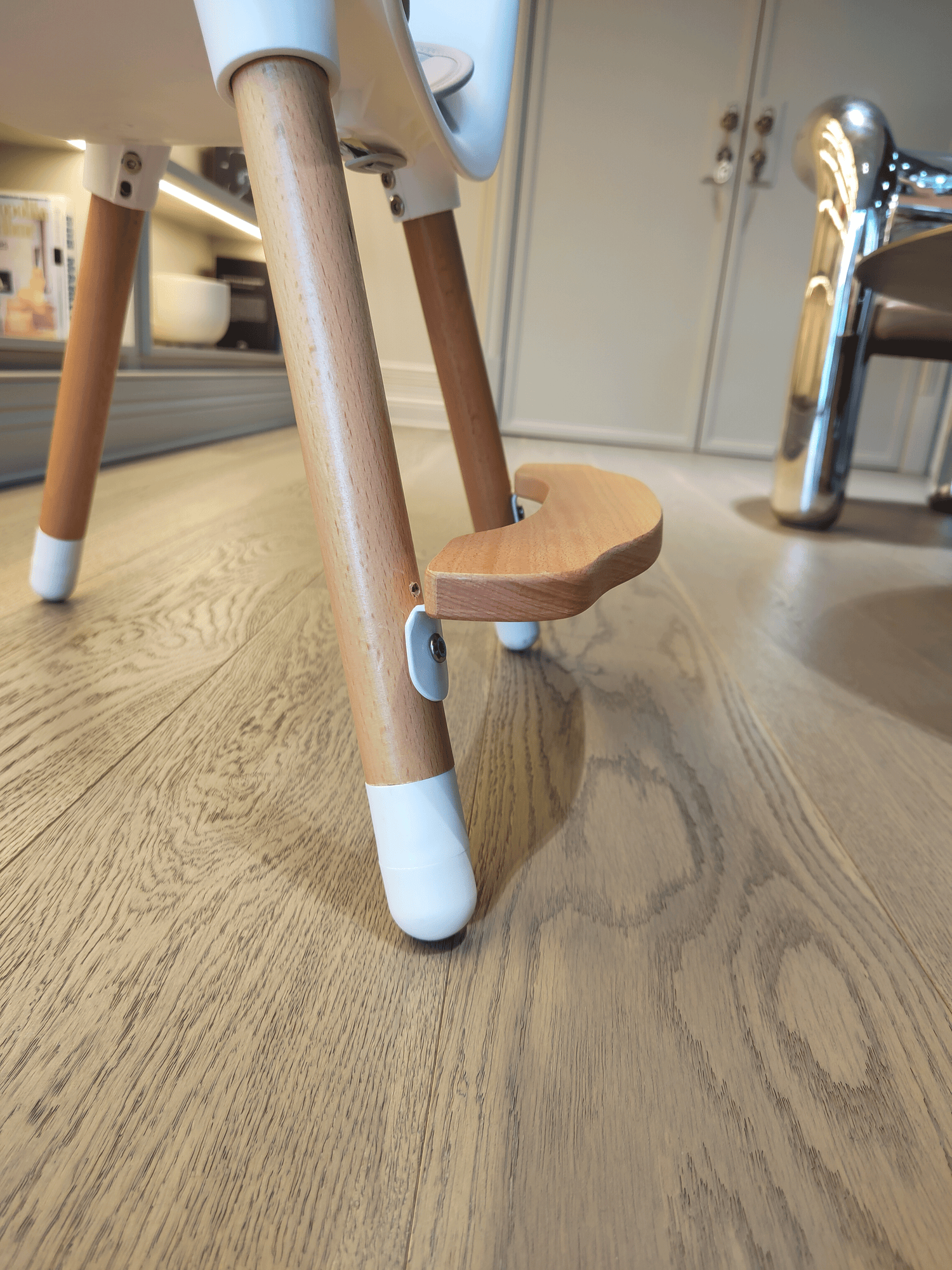 The Grow+ is thoughtfully designed to support your little one right from the start. Constructed from durable beech hardwood, it absorbs shock and can withstand a heavyweight capacity, ensuring stability and longevity. The footrest is adjustable with two height settings, making it more comfortable for younger babies to use. As your child grows, simply adjust the footrest to provide extra room and support.